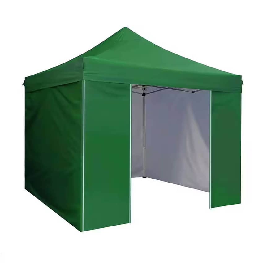 This easy-to-assemble pop-up canopy tent with four sidewalls in forest green is the perfect solution for your next outdoor event. It requires only two people to set up in minutes, and the thumb latch lock system makes it easy to secure the sidewalls in place. The canopy is made of commercial grade 300-denier tarpaulin, which is stronger than standard tarpaulin and resistant to fading, tearing, and flame-retardant. It is also silver-plated to block harmful ultraviolet rays. Three-stage adjustable pop-up design allows you to choose from three height settings: 83.8 inches, 87.2 inches, and 90.5 inches. The sidewalls each have a zipper design for easy installation. The canopy is supported by a sturdy and durable steel frame with a white powder coating to prevent rusting. The attached sidewall and door allow you to adjust the protection of the tent, and Velcro straps secure the walls in place. This canopy tent measures 10 feet long, 10 feet wide, and 83.8-90.5 inches high. It comes with a carry bag that measures 64 inches long, 9.6 inches wide, and 10.4 inches high. This canopy tent is perfect for a variety of outdoor events, such as picnics, parties, camping trips, and farmers' markets. It is also great for commercial use, such as trade shows and festivals.