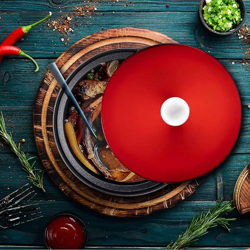 - The lid traps moisture for even steam distribution, while the cast iron base cooks your meals to perfection. No need to season; this equipment handles it all effortlessly