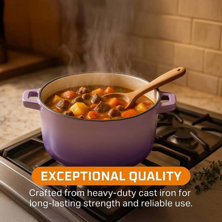 - Oven-Safe for High Heat Cooking: This cast iron dutch oven with lid withstands oven temps up to 500°F; ideal for baking, roasting, or stovetop-to-oven recipes with long-lasting durability