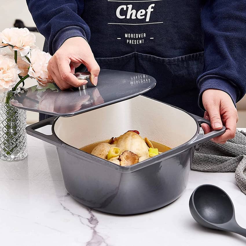 Bruntmor 5 Quart Iron Enameled Dutch Oven, Gray