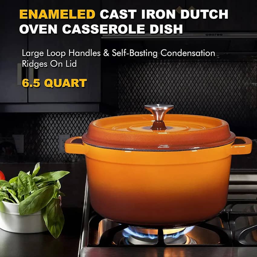 - Durable and Long-lasting: This 6.5 Quart Dutch Oven Pot from Bruntmor is crafted from high-quality cast iron, promising superior durability and lasting performance. Its pumpkin spice color adds a vibrant touch to your kitchen collections