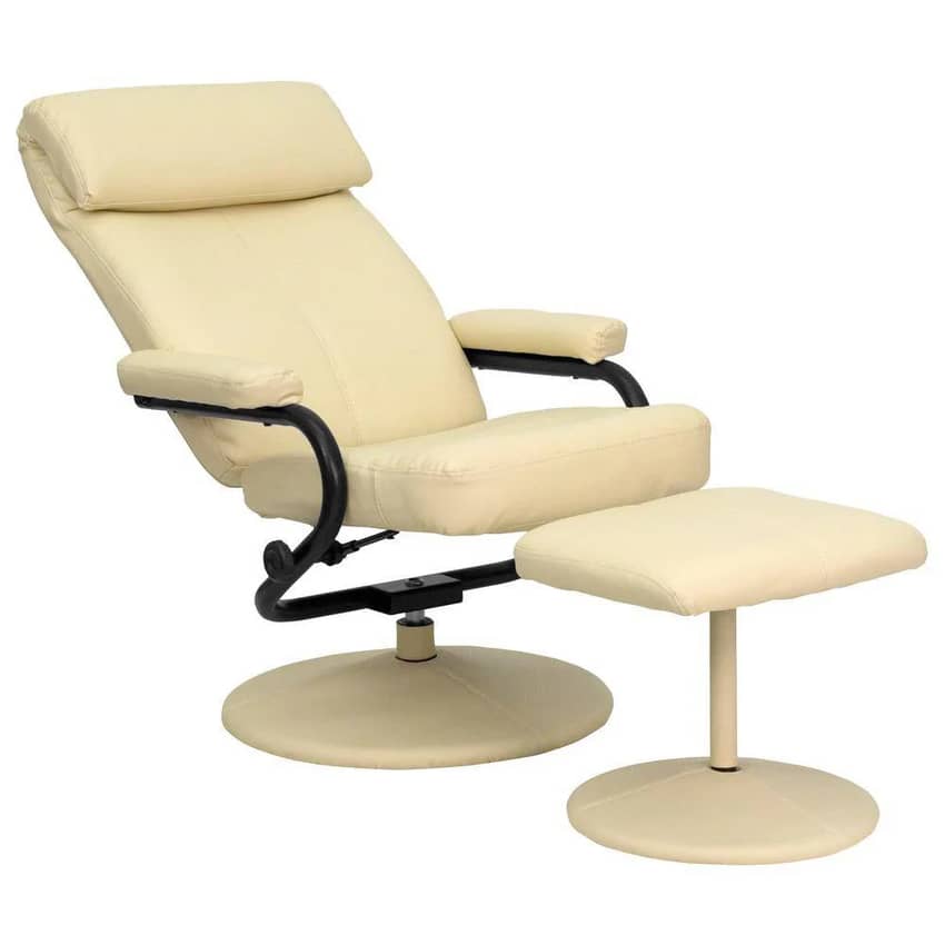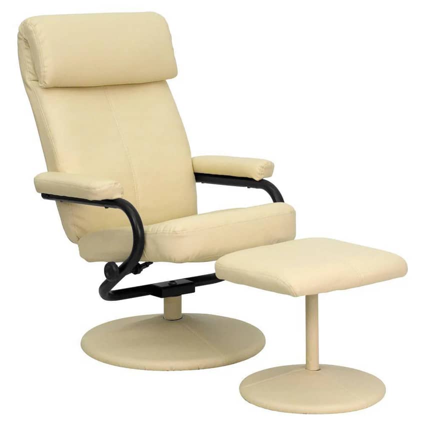Flash Furniture Faux Leather Swivel Recliner with Ottoman, Cream