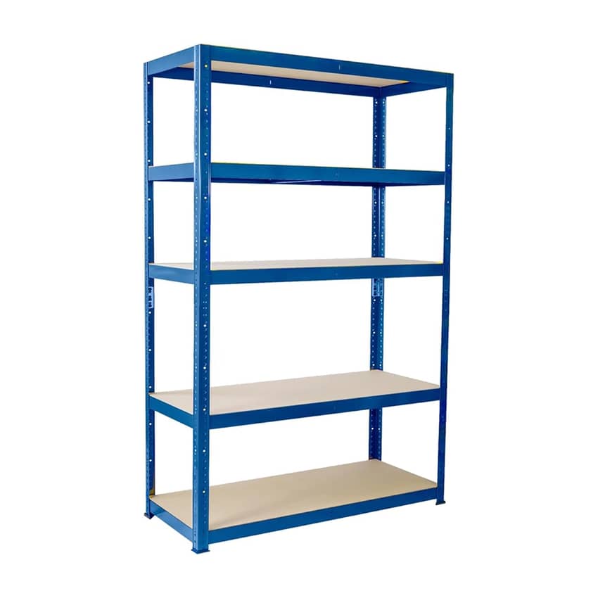 Maximize your space and get organized with the G-Rack 5-Tier Garage Shelving Unit. Made from durable alloy steel with a striking blue finish, this shelving unit is a robust storage solution built to last. Each of the five shelves can hold up to 385 pounds, for a total of 1930 pounds per unit. The boltless assembly system makes setup quick and easy; simply snap the pieces together. With its non-slip rubber feet and impressive weight capacity, this unit provides a sturdy and reliable way to organize everything from tools to bulk items. Its versatile design is perfect for garages, workshops, and storage rooms, helping you maximize efficiency and keep your space clutter-free. This shelving unit measures 35 inches long, 18 inches wide, and 71 inches high.