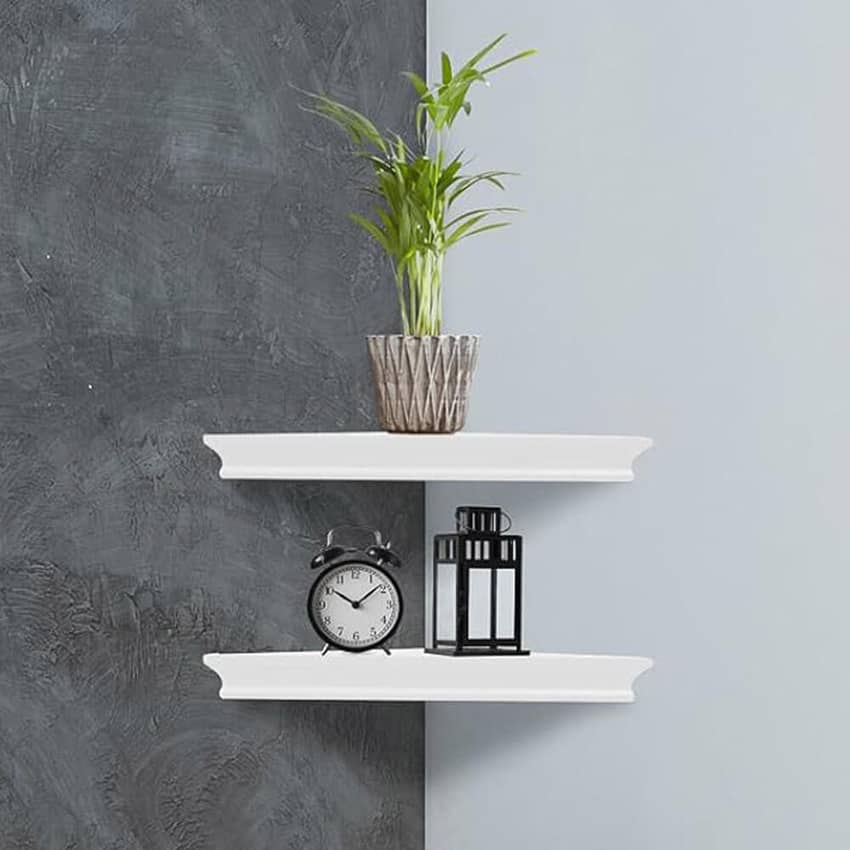 - Durably Made: The 2-count wall mount corner floating shelves are lightweight yet sturdy. They are made of durable MDF laminate & will hold up to 7.7 pounds