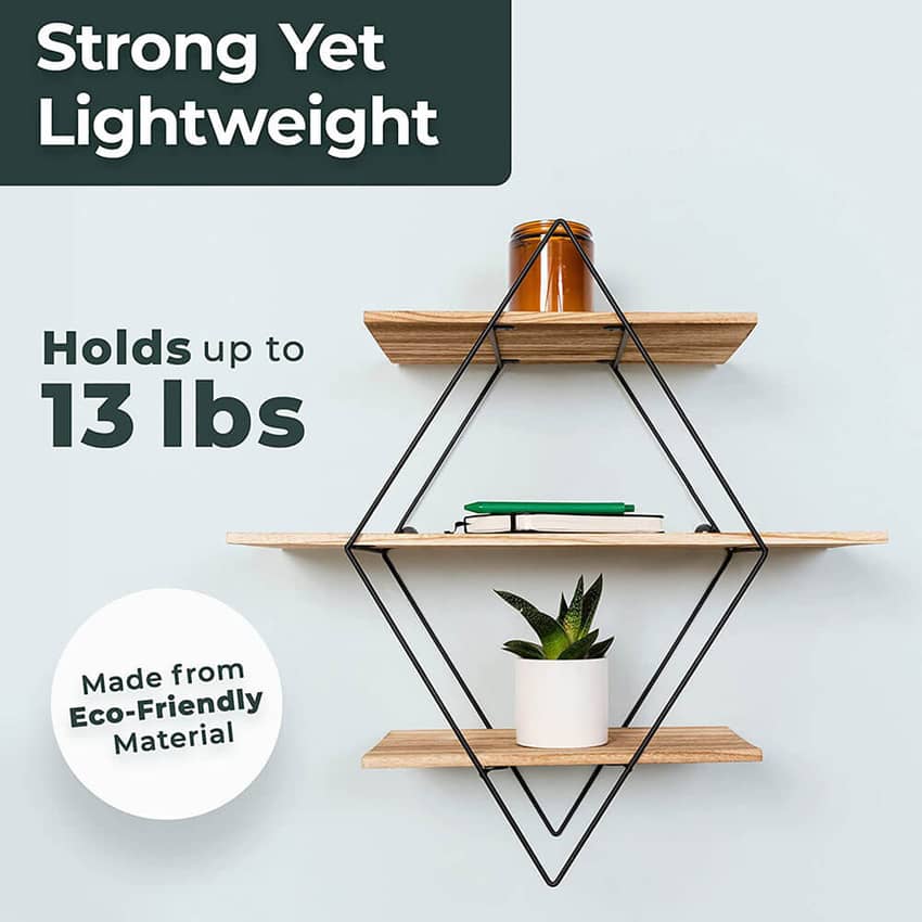 - Decorative & Multi-Functional Shelves: This 3-tier diamond-shaped geometric floating shelf will look great in any room and are an ideal choice for kitchens, living rooms, bedrooms, kids' rooms, bathrooms, nurseries, offices, etc