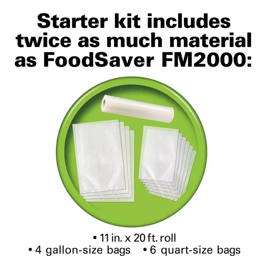 - This easy to use vacuum sealer comes with one 11 in. x 20 ft. heat-seal roll, 4 gal. size and 6 quart-size heat-seal bags so you can get started right away