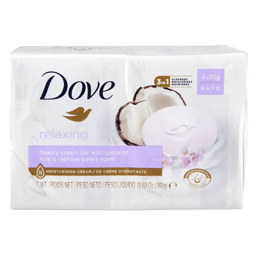 Dove Relaxing Beauty Cream Bar with Coconut Milk & Jasmine Petals Scent, 4 Pack