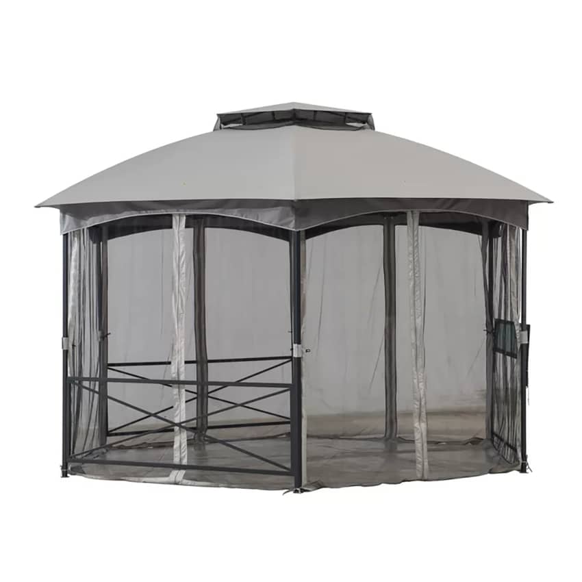 Sunjoy 2-Tone Steel Gazebo with 2-Tier Dome Roof, 14.7’ x 12.7’, Gray