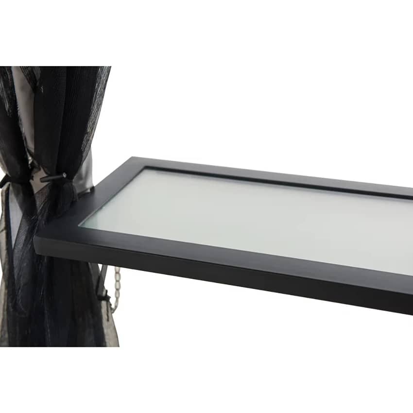 - Powder-coated black steel frame