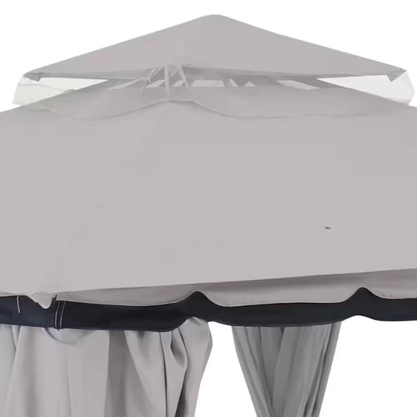 - This patio gazebo features an elegant canopy double roof made from 100 GSM polyester to resist the elements and provide shelter from wind, sun and rain