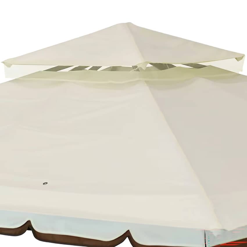 - This patio gazebo features an elegant canopy double roof made from 100 GSM polyester to resist the elements and provide shelter from wind, sun and rain