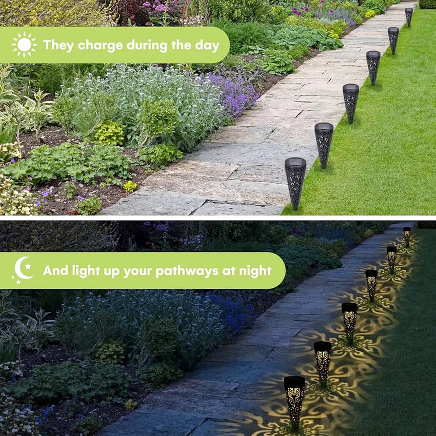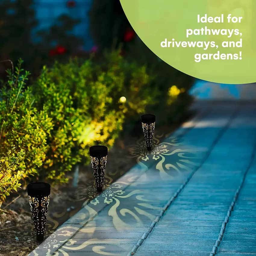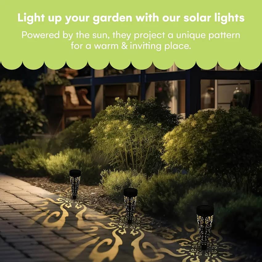 - Experience the best pathway lighting with our solar powered outdoor lights. These decorative solar outdoor lighting fixtures project exclusive patterns, creating a warm ambiance in your garden with their unique beauty