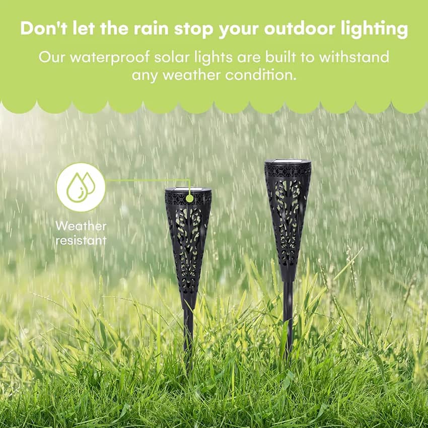 - Solar lights outdoor waterproof are made of high-quality material and are waterproof, ensuring they can withstand weather conditions. These solar powered outdoor lights are perfect for any outdoor space
