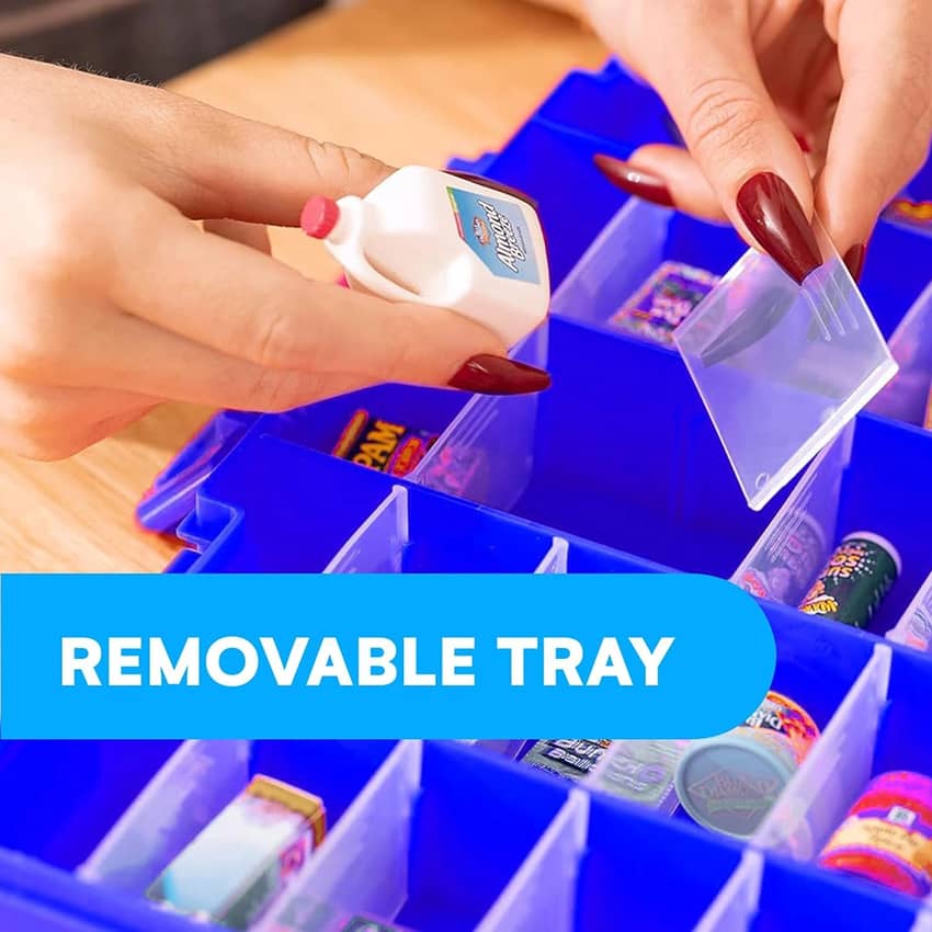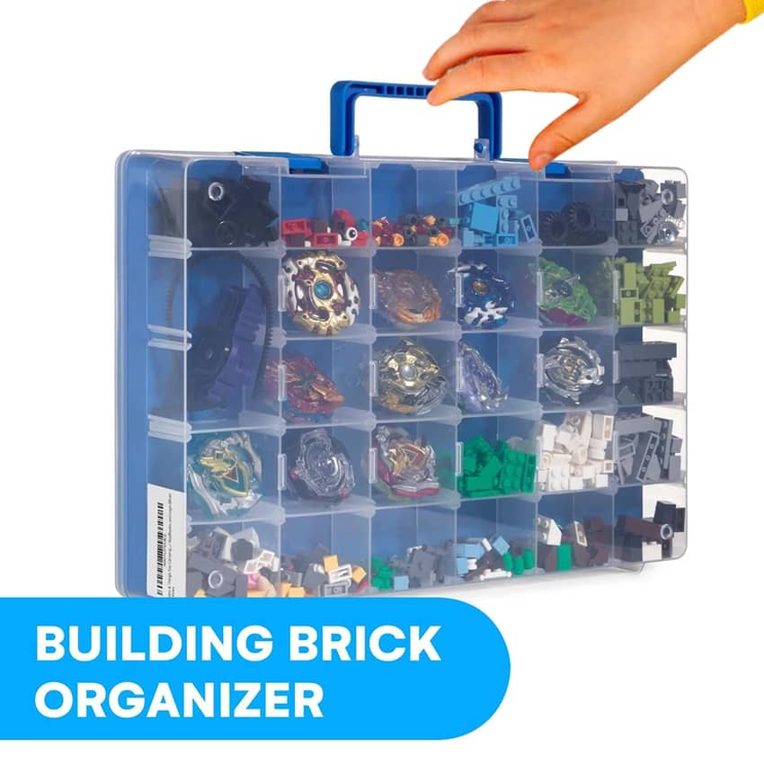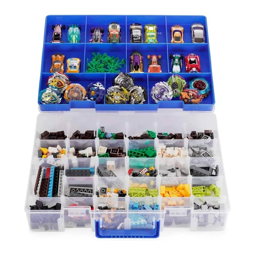 - Equipped with 30 adjustable dividers and a removable blue tray with 11 small fixed compartment, it lets you create custom storage for toys spaces of any toy collection. Beyblade storage case for boys