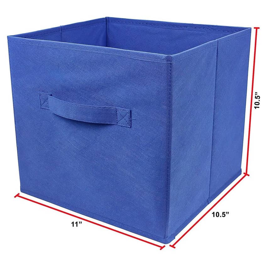 Greenco foldable storage cubes come in a set of six and are made of royal blue non-woven fabric. They're a great way to organize a variety of items, including clothes, toys, art and craft supplies, trinkets, and more. They are also specifically designed to fit into storage cube compartments. Each cube has a reinforced bottom to help it stand sturdy and has convenient side handles for easy carrying. Each cube measures 11 inches long, 10.5 inches wide, and 10.5 inches high.