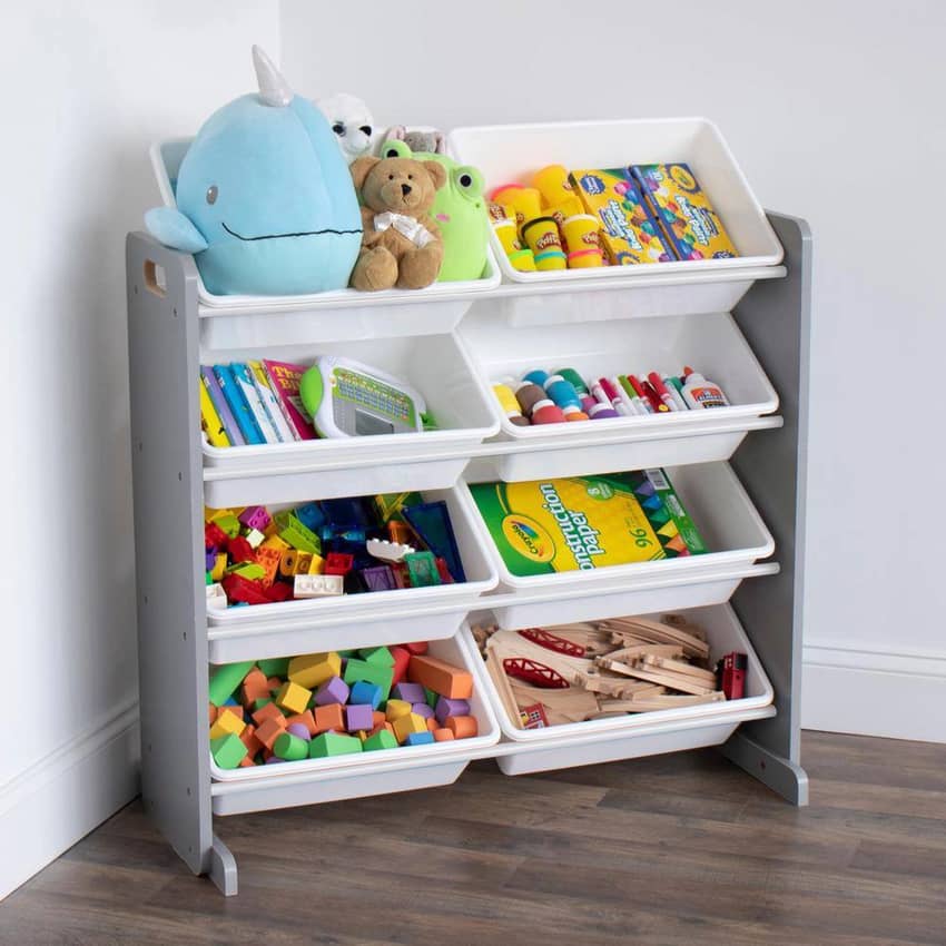 Humble Crew Toy Storage Organizer with 8 Large Plastic Storage Bins, White/Gray
