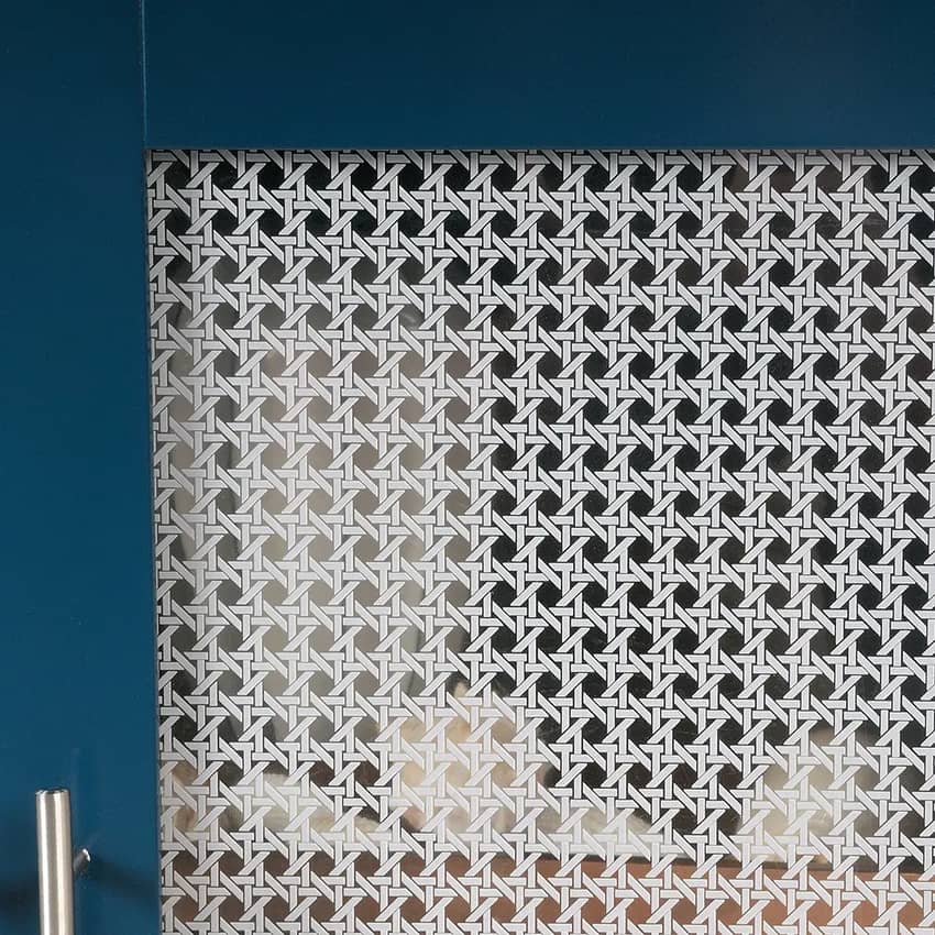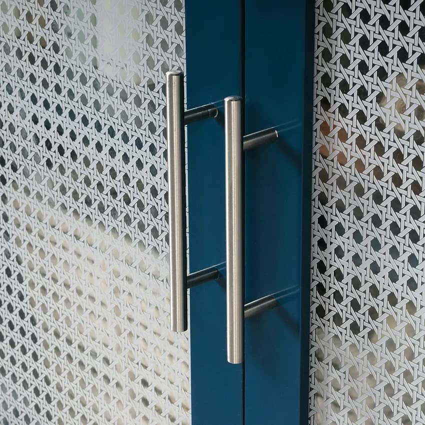 - Framed, safety-tempered glass doors feature silkscreened pattern for an added touch of visual interest