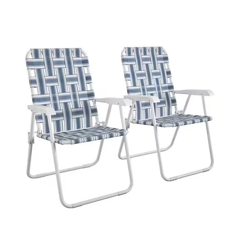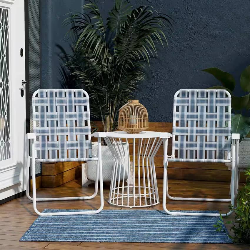 • Built from durable, weather-resistant white powder coated steel and blue and white striped nylon straps