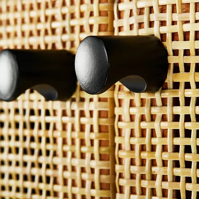 - Cane-front cabinet doors create a pleasing sense of textural contrast