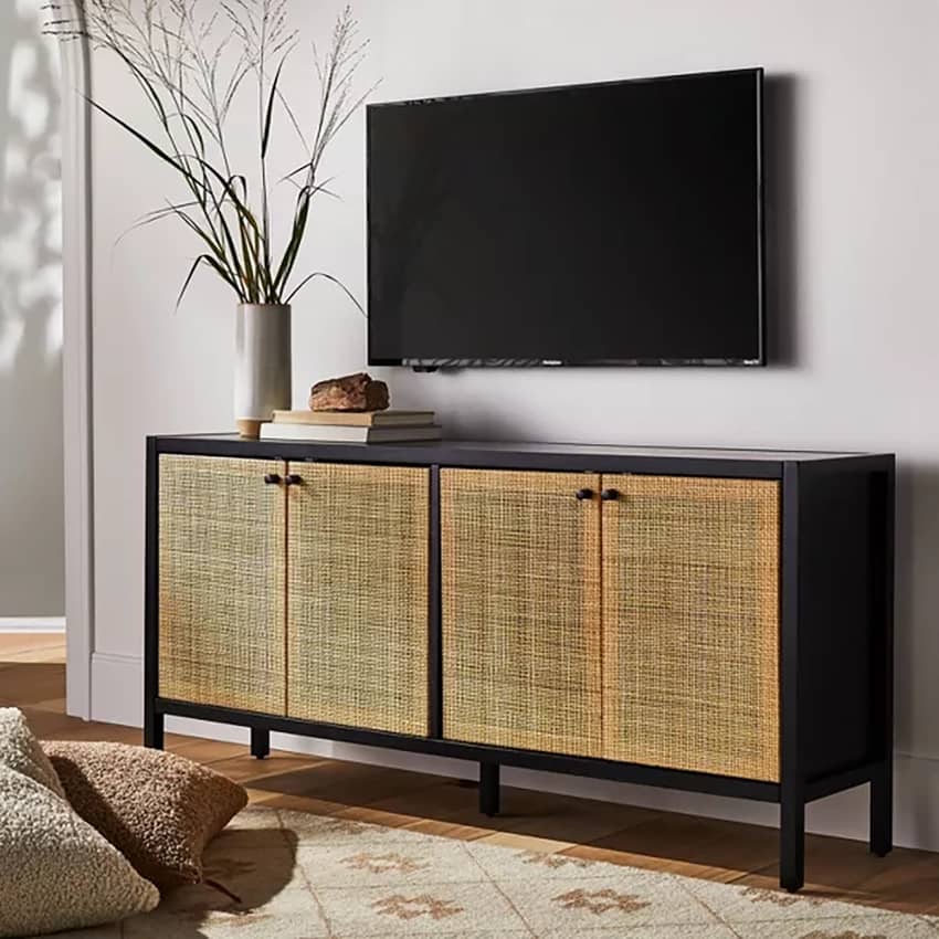 Threshold Springville Caned Door TV Stand, Black/Natural