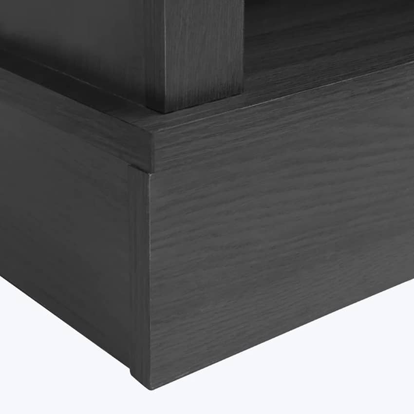 - Features 2 sliding barn doors with industrial-style matte black metal hardware, providing easy access to cabinets and shelves