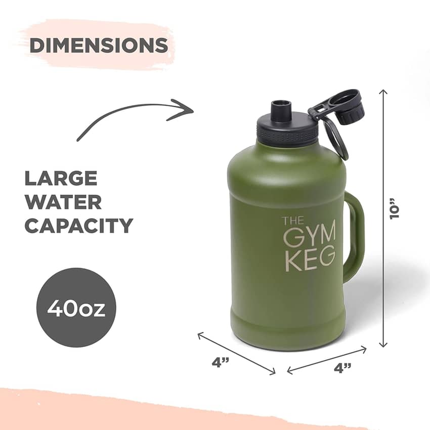 The Gym Keg 40 oz Insulated Water Bottle, Rainforest Green
