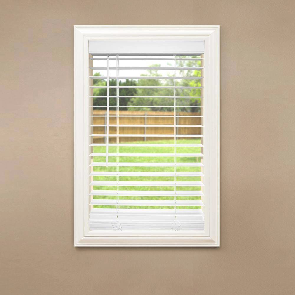 - Actual faux wood blind width measures 41.5 in. due to a 0.5 in. deduction at the factory to ensure a proper fit on the window or door frame
