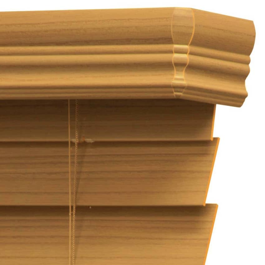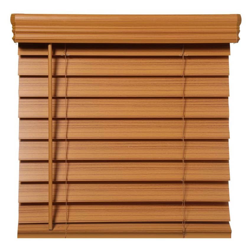 - Premium Faux Wood blind includes: Installation brackets, hardware, hold down brackets and 3 in. matching valance