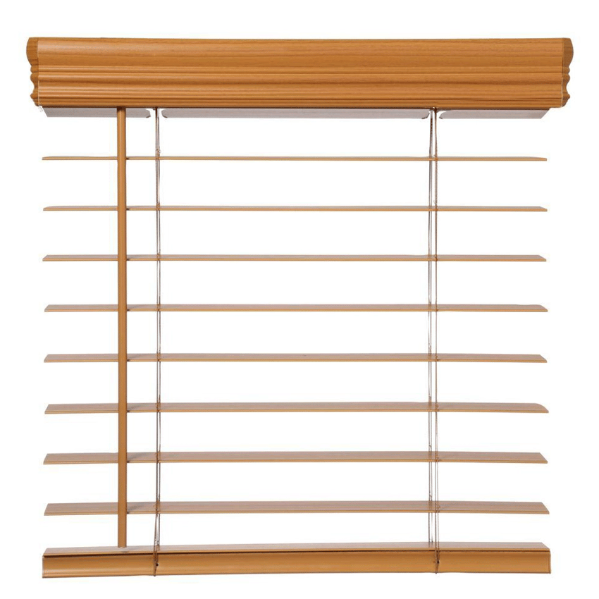 - Actual premium faux wood blind width measures 28.5 in. due to a 0.5 in. deduction at the factory to ensure a proper fit on the window or door frame