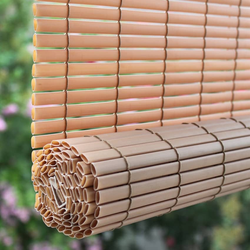- Indoor/Outdoor Wood PVC Cord Free Roll-Up Blind, 72"