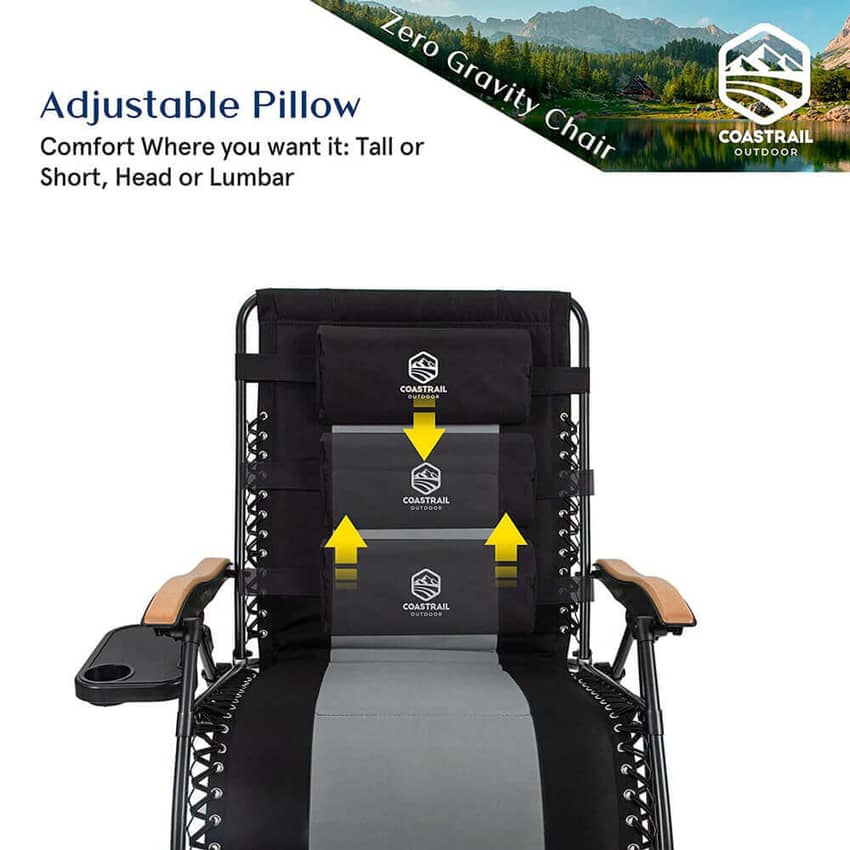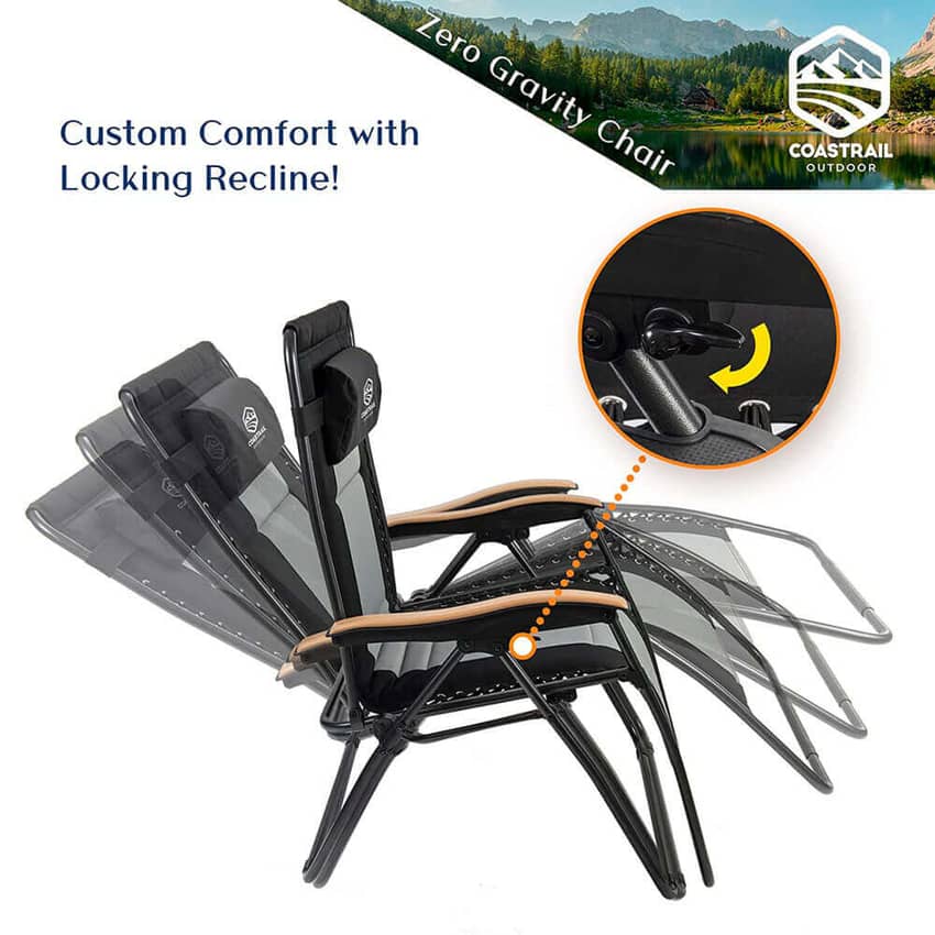 - Coastrail Outdoor Zero Gravity Chair with Premium Wood-Like Armrests & Side Table with Cup Holder, Black/Gray